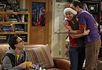 Except that when Sheldon receives Penny’s gift, his plan melts down immediately. Penny is a waitress at a Cheesecake Factory restaurant and one evening waited on Sheldon’s idol, the actor Leonard Nimoy, “Mr. Spock” of Star Trek fame. So she asked Nimoy to autograph a yellow cloth napkin with a Sharpie and make it out to “Sheldon.” For Sheldon, this is a gift of inestimable value. It carries no price tag. So Sheldon disappears into his bedroom only to return with all 6 gift baskets that he foists upon Penny. But even THAT was clearly not enough. So Sheldon overcomes his social awkwardness long enough to give Penny a hug.